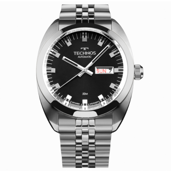 Para celebrar o centenário da Technos, apresentamos uma coleção especial em homenagem ao ano de chegada da Technos ao Brasil, em 1958, com design inspirado nos relógios lançados pela marca na década de 50. São modelos com maquinismo automático japonês, com presença do day-date, 21 jewels e reserva de marcha de 42 horas. Todos os modelos da coleção apresentam lente com acabamento facetado, fundo de vidro rosqueado e acompanham estojo especial. Produto 100% em aço inoxidável, com maquinismo automático japonês e resistência à água de 50 metros.