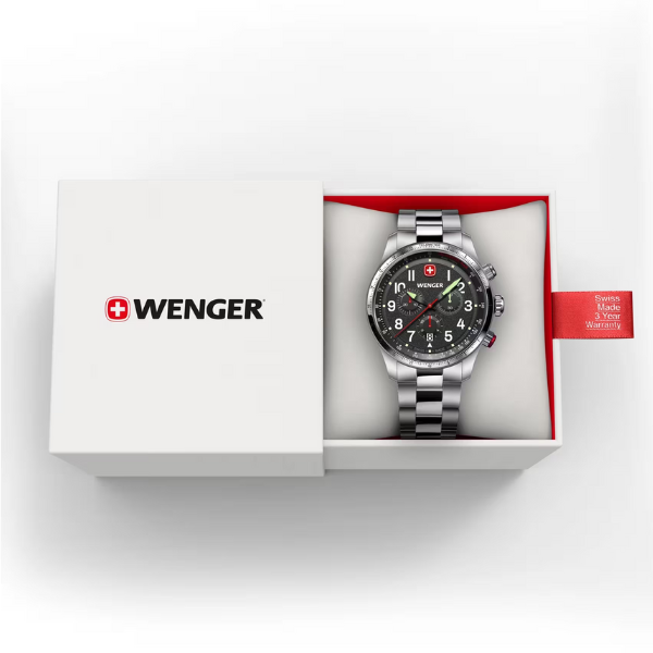 A Wenger é uma marca suíça com mais de um século de história, reconhecida pela excelência de seus relógios e pela atenção ao detalhe. Todos os modelos Wenger refletem a precisão e durabilidade que fizeram da Suíça o berço da relojoaria de alta qualidade. O Terragraph Chrono é a expressão dessa herança, com acabamento impecável e desempenho confiável.